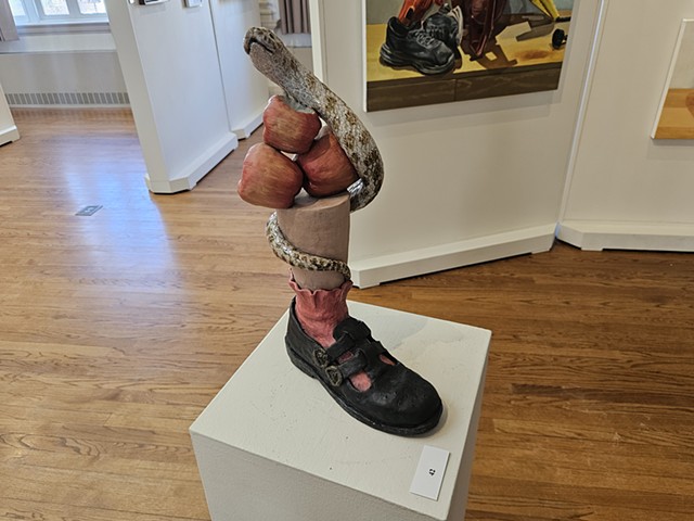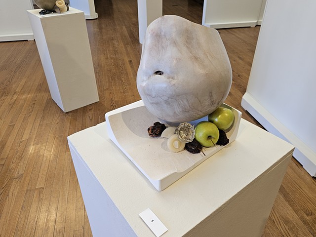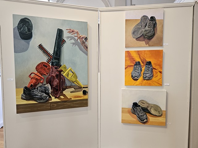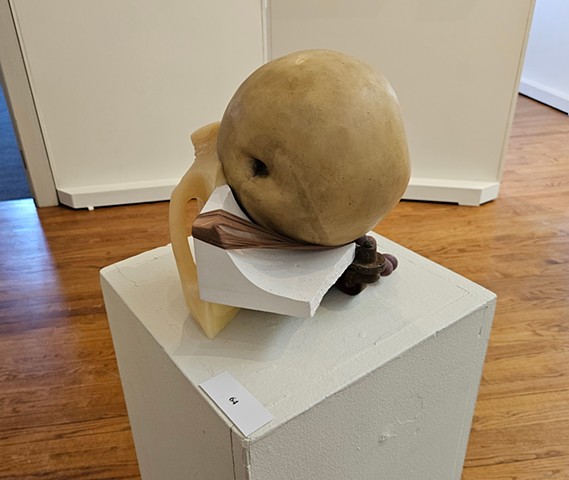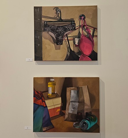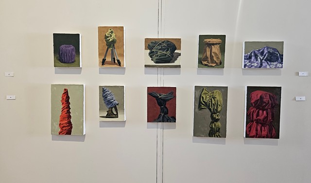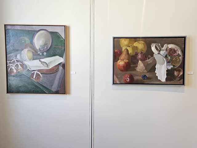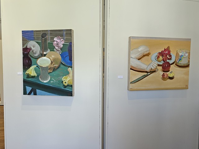 Still Life painting is often thought of as the lowest genre in painting: It is the thing you paint when learning to paint. However, throughout art history, there are moments when still life takes centerstage, such as the Dutch still life painters in the 17th century and the Impressionist paintings in the19th century, showing its versatility and importance. Still Life can be used to show Narrative, Time, Place, and Identity. This exhibition focuses on painting and sculpture done by artists exploring how object selection, compositional conventions, materiality of media, and the use of value and color can aid in delivering content and conveying stories implied in the objects artists may select to make work about. This exhibition, co-curated by professor Steven Pearson, the Joan Develin Coley Endowed Chair in Creative Expression and the Arts, and Danielle Silva, a senior Studio Art Major with a specialization in Graphic Design and Cinema Minor, is based on Student/Faculty 2025 Summer Research on the narrative possibilities of still life with Alexandra Combass ‘26, Marissa Riddell ‘26, Abigail Rubin ‘26, and Danielle Silva ’26. During summer research we read Looking at the Overlooked by Norman Bryson. Bryson’s book looks at the origins of still life and moves through western art history up to cubism. While Bryson connects still life to the “low plane reality” of daily life through the objects presented on the tables in the paintings, it also links it to broader cultural conversations by discussing what is sometimes seen around and beyond the still life. The students and the artists invited to participate in this exhibition address the everyday, bring mystery and curiosity to the mundane, allude to current events, touch on identity, and remind us that life is fleeting. We invite you to look beyond the objects, understand the grammar in the things depicted, and find the stories that are hidden in still life as exciting as we do